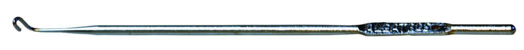 Verchroomde hakensteker, waarvan het gedeelte voor het onthaken taps toeloopt. Meer informatie