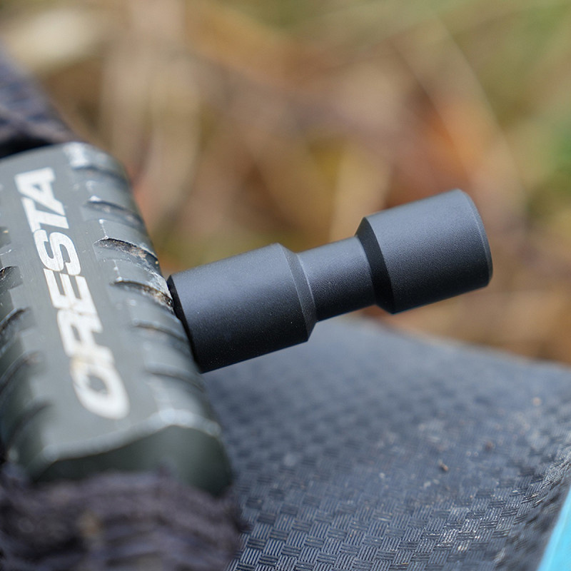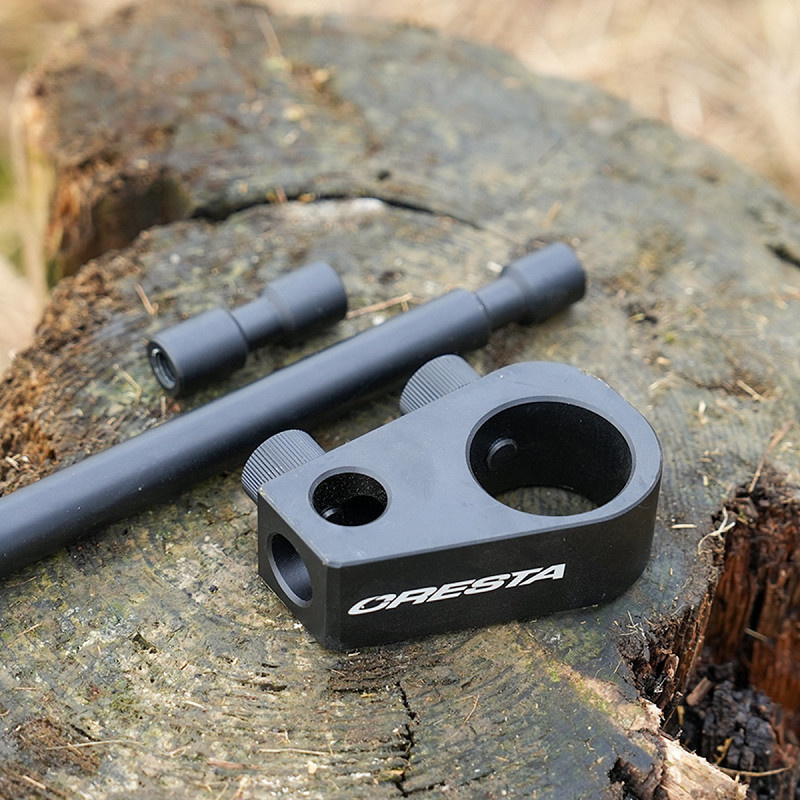 Het blok past op alle 36 mm systeempoten en kan eenvoudig, stevig en veilig worden vastgezet met een compacte aluminium schroef. Deze schroef heeft ribbels aan de buitenzijde voor extra grip, waardoor ook met natte of koude handen probleemloos kan worden gewerkt. De twee meegeleverde banksticks – een korte van 5 cm en een langere van 18 cm – zijn vervaardigd uit hetzelfde hoogwaardige aluminium en voorzien van standaard schroefdraad. Hierdoor kunnen gangbare accessoires zonder aanpassingen worden gemonteerd. Dankzij zowel een verticale als horizontale aansluiting kan de visser de bankstick exact zo positioneren als de situatie vereist.