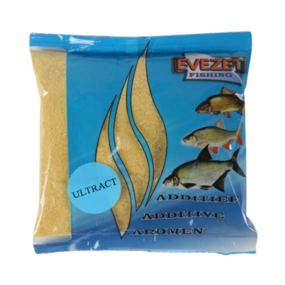 Ultract is gebaseerd op Scopex. Mierzoet en heeft een sterke langwerkende aantrekkelijke geur. Zowel de feeder als ook de vaste stok visser gebruiken het al heel wat jaren met succes. Haar werking richt zich vooral op alle grote vis zoals Karper, Brasem, Zeelt etc. 1 zakje van 250 gr is goed voor 3 kilo lokvoer.