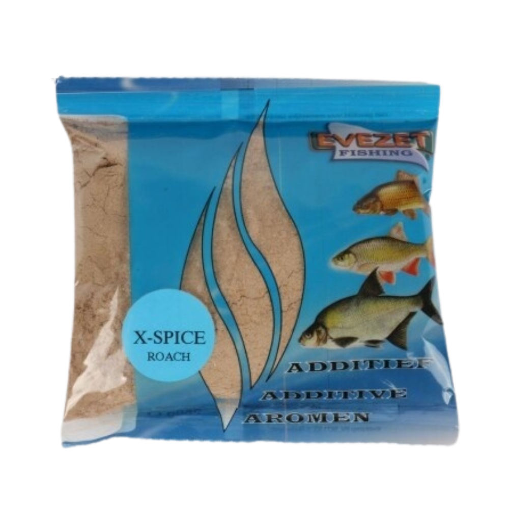 X Spice is een mix zoals door het Team Evezet regelmatig ingezet wordt in alle omstandigheden waar het water niet warmer is dan 16 graden. Het zijn kruiden die in combinatie met elkaar een super aantrekkingskracht hebben op vis. Vooral Voorn, Winde en hun soortgenoten zijn gek op X Spice. De kruiden die worden gebruikt zijn van de beste meest verse soorten zoals ook gebruikt voor menselijke consumptie. 1 zakje van 250 gr is goed voor 3 kilo lokvoer.
