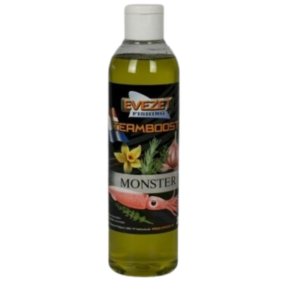 Vloeibare aroma/ booster voor het mengen in een voermix, of rechtstreeks in de voerkorf. Door de handige doseeropening makkelijk te doseren. Kan gebruikt worden om in water op te lossen of puur in het voer in de voerkorf te injecteren. Ook andere aas soorten kunnen worden gesoaked in deze vloeistof. Monster is de visgeur variant.