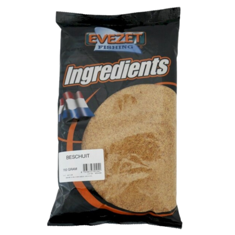 Gemaakt van gemalen beschuit, hoe langer de beschuit is gebakken hoe donkerder het beschuitmeel. De geur is bij donkerdere Beschuitmeel ook sterker. Het is een licht element dat ervoor zorgt dat er een mooie snel werkende actie ontstaat. Erg veel gebruikt in Voorn voer. Het is één van de basiselementen in een goede mix. Ook kan het voor lichtere boilie mixen worden gebruikt. Gebruik 10 tot 40% in een lokvoer.