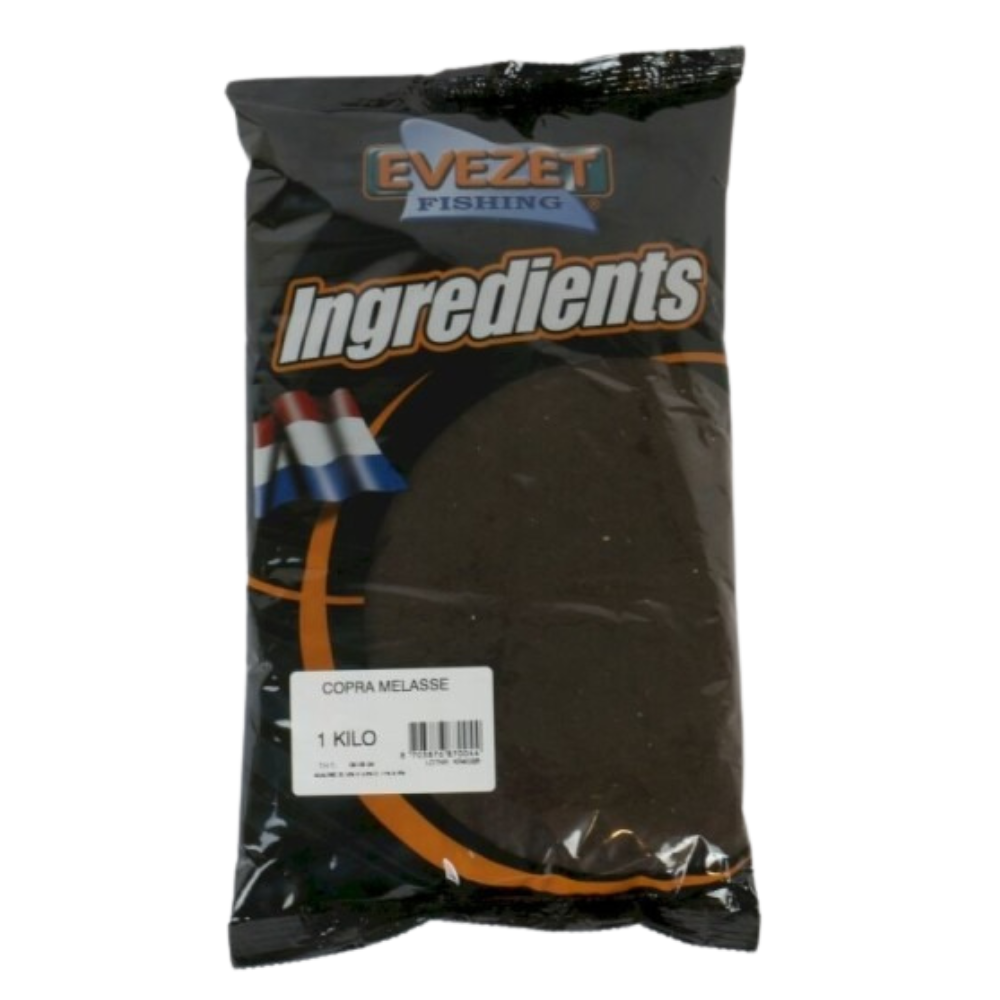 Copra Melasse is een combinatie van kokosmeel en melasse en woord veel gebruikt voor het vissen op brasem. Het is donker van kleur, vettig en een goede binder. Zorgt voor een goede smaak en bevat betaine. Gebruik 15 tot maximaal 30%.