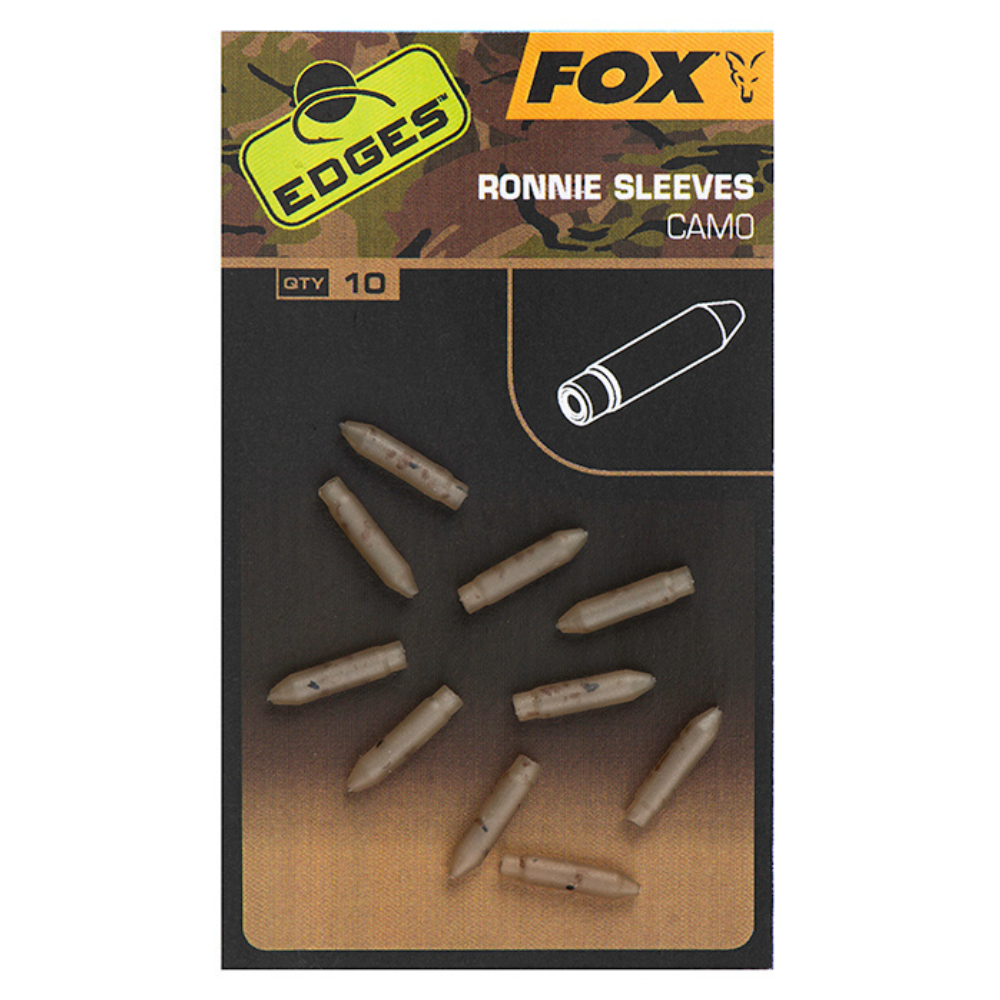 Fox Edges Ronnie Sleeves fixeren op een zeer gemakkelijke wijze de wartel aan het haakoog voor het maken van Ronnie/Spinner rigs. Ontworpen om over de haakpunt en haaksteel te schuiven en vervolgens over het oog en de Kwik Change Hook Swivel. Het geheel wordt dan stevig bij elkaar gehouden en gebruik van shrink tube is niet meer nodig. De getaperde punt verzekert een nette set-up. De sleeve kan zelfs opnieuw worden gebruikt voor het snel verwisselen van haak.