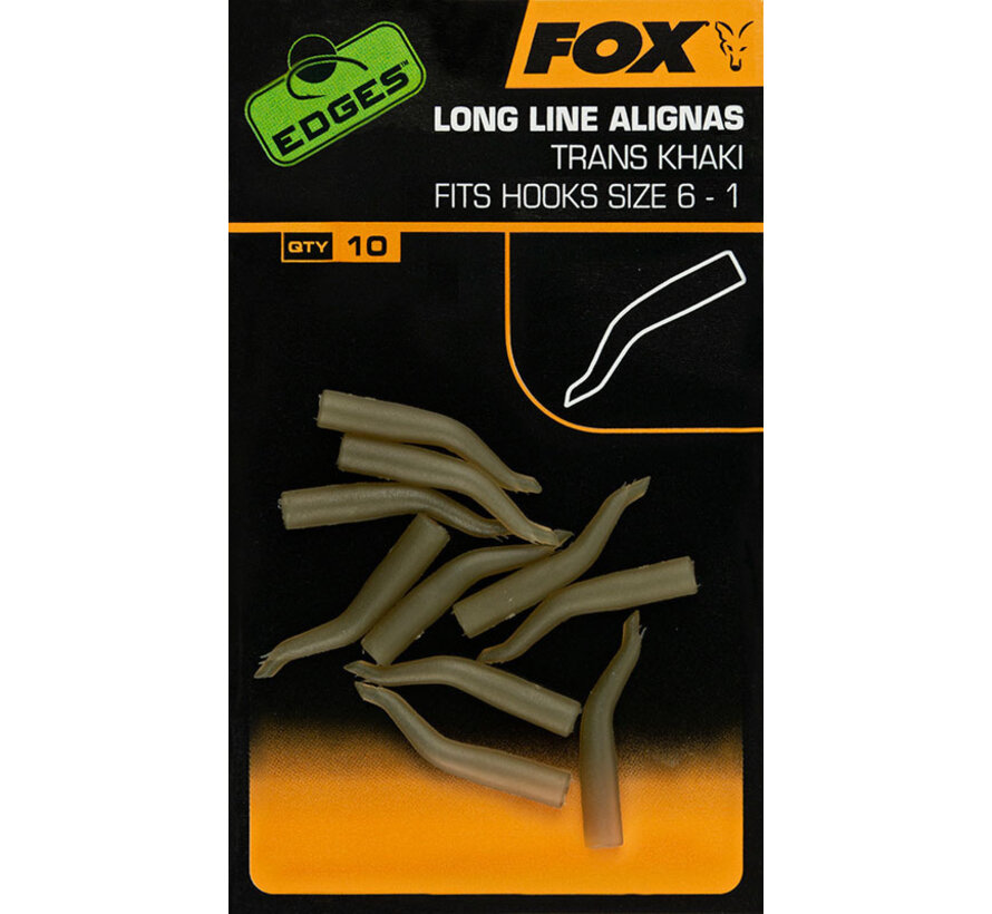 - Schuif de Aligna eenvoudig over de onderlijn en dan over het haakoog (wij adviseren een Edges Splicing Needle voor het bevestigen van de Aligna op de onderlijn)