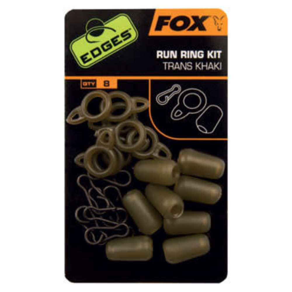 De Edges Run Ring Kit van FOX is speciaal voor het vissen met een running rig gemaakt en zorgt ervoor dat het lood zal blijven liggen wanneer een gehaakte vis er vandoor gaat. Hiermee voorkomt u dat de vis zich van de haak kan ontdoen door het lood als contragewicht te gebruiken. De sleeves van de Run Ring Kit zorgen ervoor dat het lood tijdens de worp van de rig wordt weggehouden.