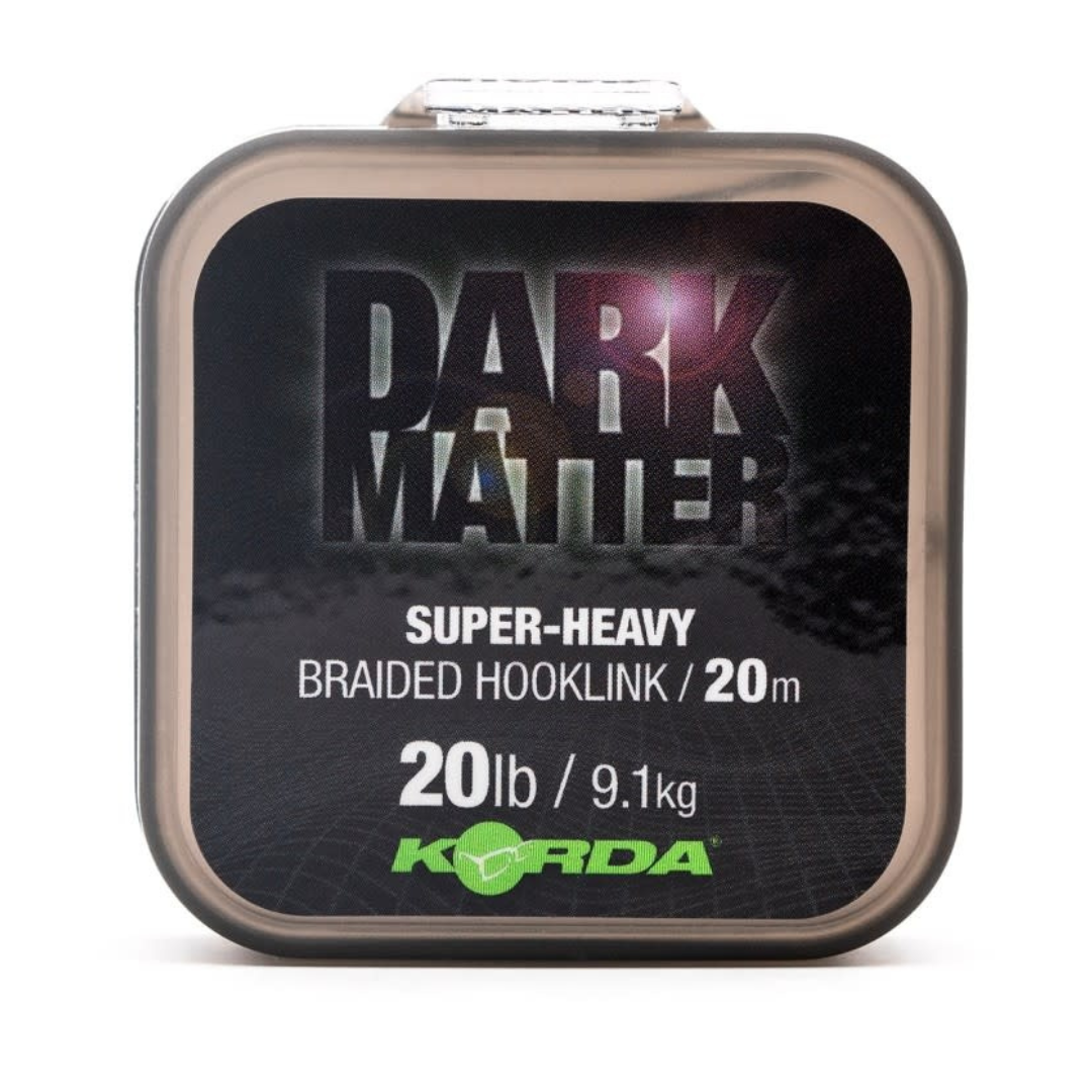 Dit uiterst soepele gevlochten onderlijnmateriaal zinkt ongelooflijk goed, omdat het de bodemcontouren volgt, waardoor het voor karpers moeilijk te ontdekken is. Het heeft zeer sterke vezels die strak geweven zijn, zodat ze niet gemakkelijk uit elkaar zullen komen, waardoor het eenvoudiger is om een rechte snede te krijgen en het probleemloos door het oog van een haak te rijgen bij het maken van een 'knotless knot'. Het bestaat uit een mengsel van groen en silt gekleurde vezels, zodat het goed samensmelt met welk type bodem u ook bevist. Het is een uitstekende keuze bij het vissen met Solidz PVA-zakken, maar is ook geschikt voor talloze andere montages. Dark Matter Braid wordt geleverd op een spoel van 20 meter en is verkrijgbaar in breeksterktes van 15lb, 20lb of 30lb.