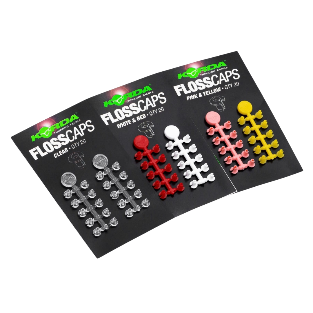 Veel moderne rigs omvatten het vastbinden van aas aan een rigring of micro-swivel met Bait Floss, en dit kan lastig zijn, vooral in het donker of met koude vingers. Floss Caps halen alle moeite weg bij het bevestigen van uw aas. U rijgt eenvoudig een Floss Cap op de taguiteinden van Bait Floss - nadat u een aasnaald hebt gebruikt om uw haakaas op de floss te monteren - duwt u het in het aas totdat het gelijk ligt, en gebruik dan een aansteker om de uiteinden van de floss te smelten en de Floss Cap stevig op zijn plaats te houden. Drie verschillende kleurcombinaties van Floss Caps zijn beschikbaar, om uw haakaas te matchen of een vleugje kleur toe te voegen - helder; rood/wit; of roze/geel. Ze komen bevestigd aan een centrale houder en worden eenvoudig gedraaid om de individuele Floss Cap los te maken wanneer u die nodig hebt. Elke verpakking bevat 20 Floss Caps - tien van elke kleur.