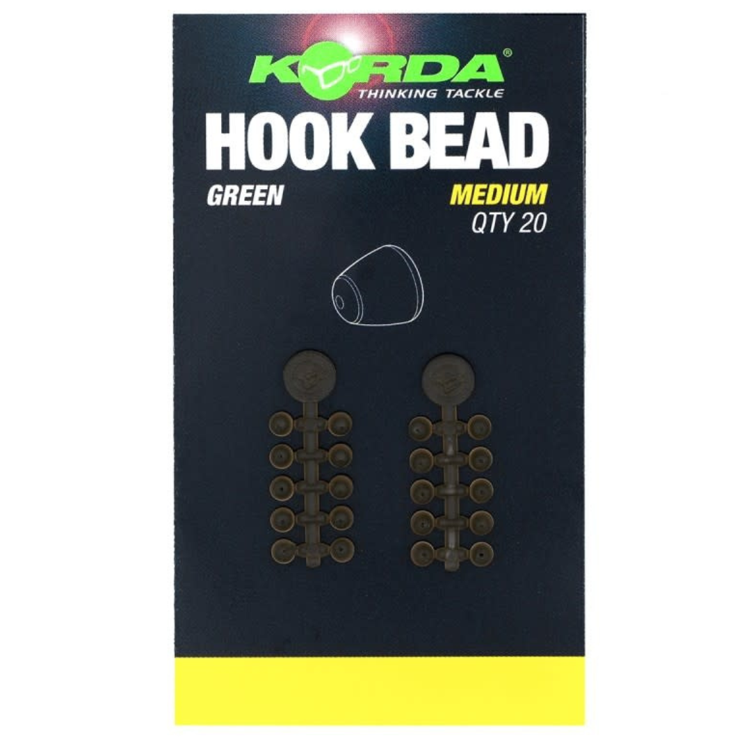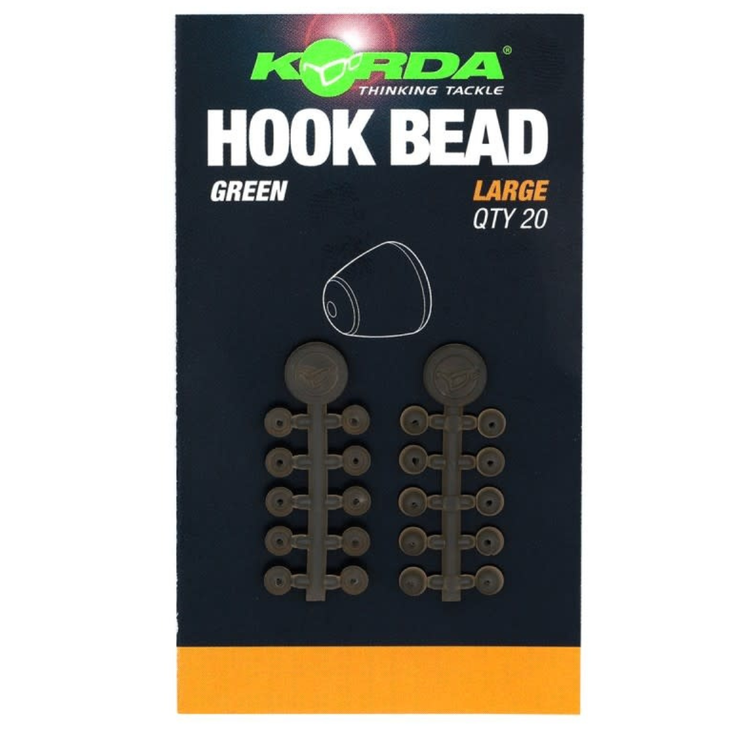 The Hook Bead is handig voor een breed scala aan verschillende rigs - vrijwel alles waarbij een rig-ring of micro-swivel op de haak wordt gebruikt! Hoewel dit een zeer eenvoudig stukje tackle is, is er veel nagedacht over het maken van de Hook Bead. Ze grijpen ongelooflijk goed vast en u kunt er zeker van zijn dat ze precies blijven zitten waar u ze hebt geplaatst zonder dat er lijm nodig is, maar zodra een vis is gehaakt, kunnen ze indien nodig naar het oog schuiven. De taps toelopende vorm met een plat einde zorgt ervoor dat een ring of swivel vlak tegen hen aan zit en niet vast kan komen te zitten of de mogelijkheid om vrijelijk over de haak te schuiven tegen gaat. Ze komen aan een centrale steel - met tien Hook Beads per steel - wat het heel gemakkelijk maakt om ze op de haak te schuiven, zelfs met koude vingers, en trek dan eenvoudig de individuele kraal weg van de steel zodra deze op zijn plaats is. Er is ook een grote versie beschikbaar en is ontworpen voor gebruik met grotere haken en past gemakkelijker over de weerhaak. Ze passen op elke haak in het Korda-assortiment van maat 2-10, en u krijgt er 20 in een verpakking.