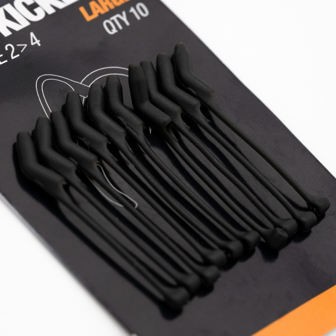 Sommige mensen hebben moeite met het knopen van een D-rig, of willen gewoon iets dat al het gedoe wegneemt, de D-rig Kickers stellen u in staat om moeiteloos deze zeer effectieve opstelling te creeren. De D-rig is een favoriet van Korda-baas Danny Fairbrass, en de D-Rig Kicker is ontworpen om elke keer de perfecte 'D' te creeren, die kan worden aangepast aan uw behoeften. Deze D-rig Kickers zijn gemaakt van rubber en nadat u uw haak aan het einde van uw onderlijnmateriaal hebt vastgemaakt, schuift u eenvoudig het langere deel van de Kicker over de haak, voeg hierna een Rig Ring of Micro Ring Swivel toe, en rijg het andere uiteinde op de haakpunt en trek de Kicker stevig over het oog van de haak voordat u het andere uiteinde positioneert om de 'D' te creeren. D-rig Kickers van verschillende maten zijn ontworpen om te worden gebruikt met een specifieke haakmaat, zodat ze correct zitten en stevig op hun plaats blijven. Ze zijn verkrijgbaar in klein (maat 6-8); medium (maat 4-6); groot (maat 2-4); en extra groot (maat 1-2). Elk pakket bevat er tien en ze zijn groen van kleur.