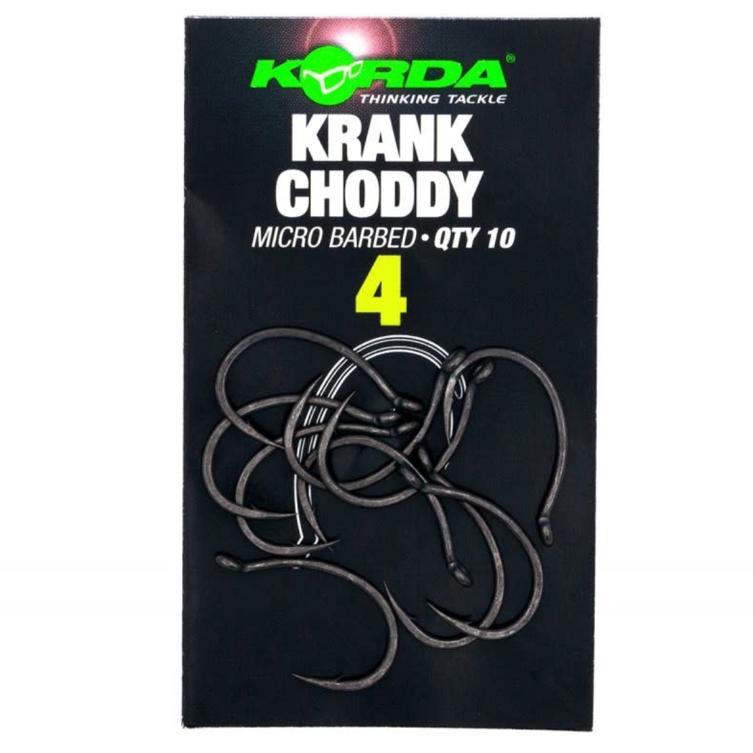 Net als de originele Krank-haak is de Krank Choddy ontworpen door het hoofd van productontwikkeling, Tom Dove, nadat hij opmerkte dat de vorm van de steel perfect zou zijn voor chodrig-presentaties. De Krank Choddy heeft dezelfde vorm als de originele Krank, maar met een naar buiten gebogen oog, zodat wanneer het wordt gebruikt met een stijf materiaal zoals Mouth Trap, er een continue curve is langs de gehele onderlijn en haaksteel, waardoor het de ultieme chod-presentatie is. Het heeft een vlijmscherpe punt met een iets uitgestelde haakbocht en een zeer brede opening, wat de haakkans vergroot en ervoor zorgt dat u een goede haakzet krijgt. Het is een zeer sterk patroon dat geschikt is voor gebruik in weedy en lastige situaties. Het is verkrijgbaar in uitvoeringen met weerhaken en zonder weerhaken, in maten 4, 6, 8 of 10, met tien haken in een verpakking.