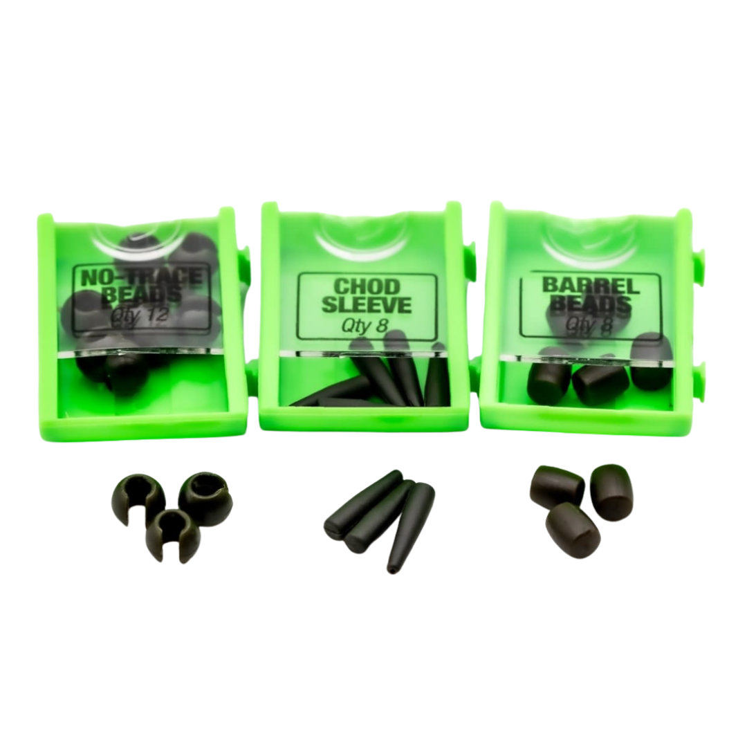 Dit maakt gebruik van ons No-Trace System en creëert een volledig veilige opstelling voor gebruik op leadcore en vergelijkbare leadermaterialen zoals de gefuseerde Dark Matter-reeks. Het is ontworpen voor wanneer uw hoofdlijn boven de leaderknoop breekt, uw onderlijn gemakkelijk los kan komen van de leader, en het enige waar de vis mee achterblijft is uw onderlijn. Zelfs sommige veiligere leadcore-helikopteropstellingen hebben altijd last gehad van de mogelijkheid dat wier of vuil zich ophoopt op de knoop en mogelijk voorkomt dat rubberen kralen eroverheen trekken en de onderlijn loslaten. Maar de No-Trace Beads lossen dat probleem op omdat zodra ze worden losgetrokken van de retainer rubber Chod Sleeve, die ze veilig op de leader houdt voor het werpen en normaal gebruik, de spleet aan de zijkant de kraal in staat stelt volledig van de leader af te glijden, waardoor uw maat 11 Ring Swivel (niet inbegrepen als onderdeel van dit systeem) gemakkelijk over elke leadcore knoop of splice kan worden getrokken. Aan de loodzijde fungeert een Barrel Bead als buffer. Het hele systeem kan eenvoudig op uw leader worden bevestigd en kan worden gebruikt met zowel chod rigs als conventionele helikopteropstellingen, zoals een Heli-Safe System. Elke Leadcore Chod Safety System bevat: 8 x Chod Sleeves; 8 x Barrel Beads; en 12 x No-Trace Beads. Reserve No-Trace Beads worden ook afzonderlijk verkocht.