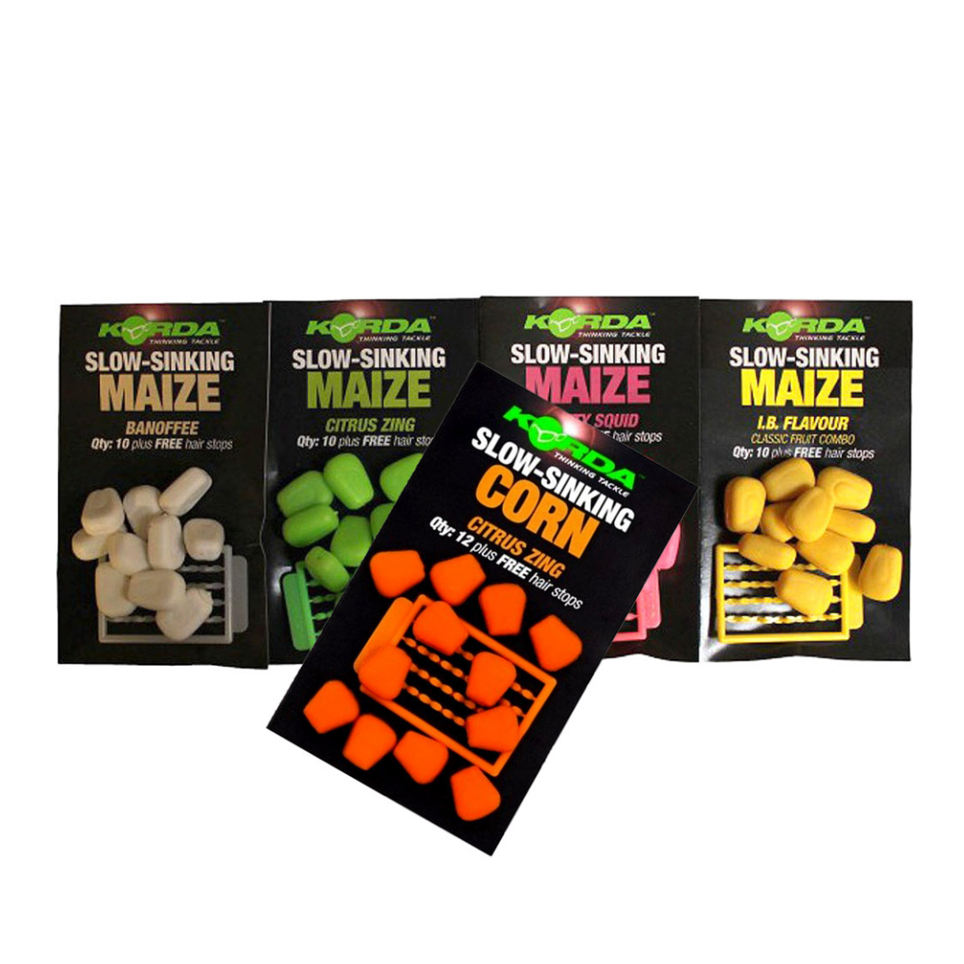 Slow-Sinking Maize is iets groter dan de Corn die ook in ons assortiment Fake Food zit, wat de grootte in het echt weerspiegelt, en het is ook meer drijvend. Dit maakt het geschikt voor gebruik met grotere haken, of systemen die meer metalen onderdelen bevatten, omdat het nog steeds genoeg drijfvermogen heeft om van de bodem omhoog te zweven en in de bek van een vis te belanden, zelfs bij gebruik van slechts 1 stuk.