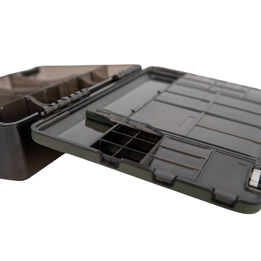 Dit is meer dan zomaar een tackle box; het is de ultieme opslagoplossing voor terminal tackle, en elk aspect ervan is zorgvuldig doordacht. Het is groter dan al onze andere opslagsystemen, zoals de Tackle Safe, en is ontworpen voor degenen onder jullie die alles wat u nodig hebt in één doos willen meenemen en het georganiseerd willen opbergen, zodat u gemakkelijk kunt vinden wat u zoekt.