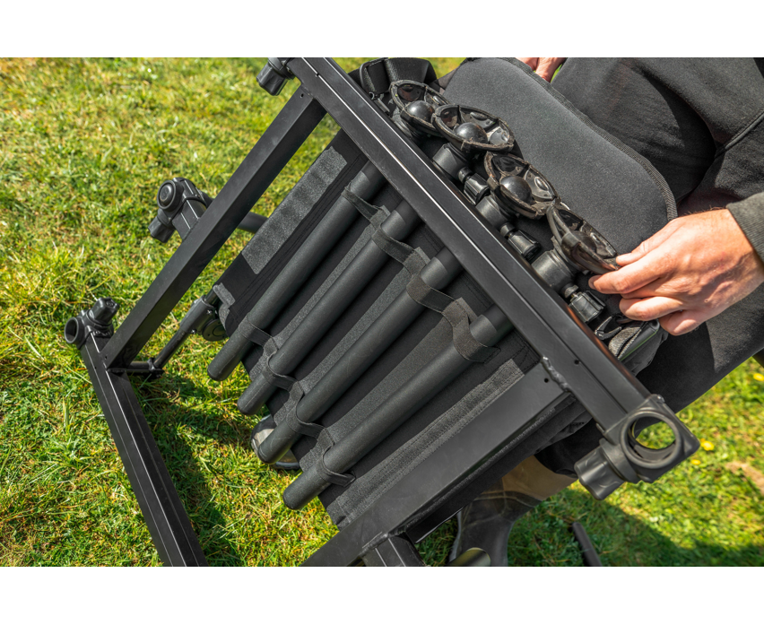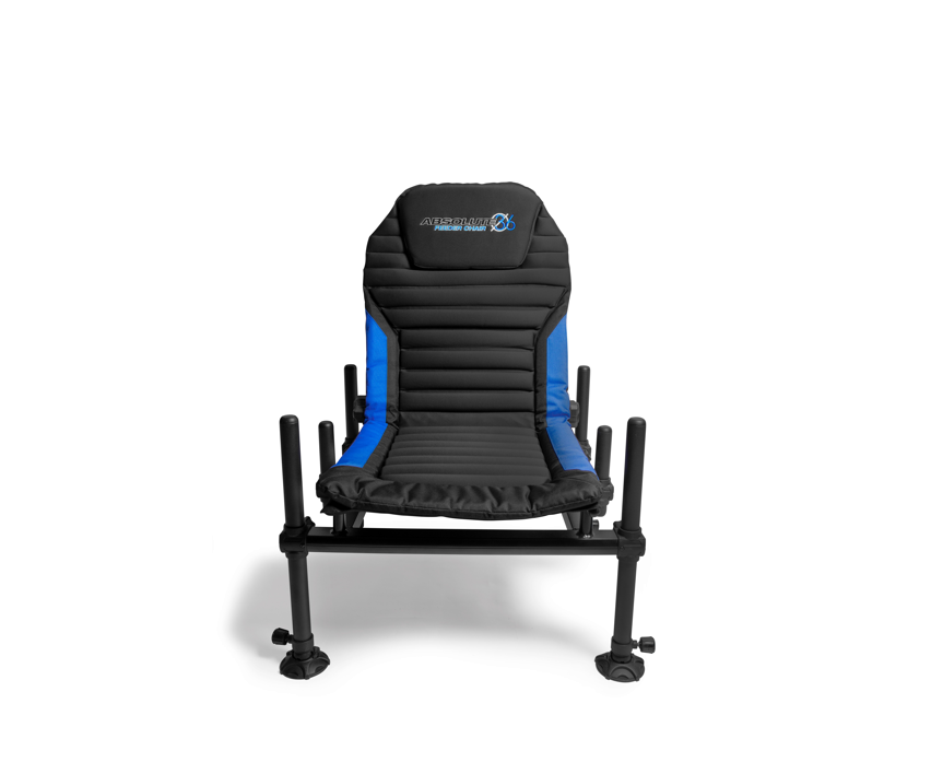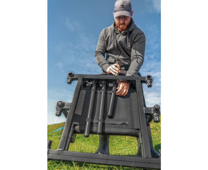 De Absolute 36 Feeder Chair is super stabiel en wordt geleverd met vier 36 mm poten plus twee extra 36 mm steunen, zodat je hieraan elk OffBox accessoire inclusief de aastafels met dubbele bevestigingspunten aan kunt brengen. Zoals de naam aangeeft is de stoel ideaal voor feedervissers, waarvoor stabiliteit van groot belang is wanneer ze er lange hengelsteunen aan bevestigen. De stoel is uitgevoerd met een extreem comfortabel matras, waarmee de Absolute 36 Feeder Chair perfect is voor lange sessies. De stoel kan echter ook gemakkelijk opgeruimd worden, waarbij de neerklapbare rugleuning en de verwijderbare poten aan de achterzijde van de stoel bevestigd kunnen worden met de meegeleverde riemen. Een schouderriem wordt meegeleverd om het geheel gemakkelijk te kunnen transporteren.