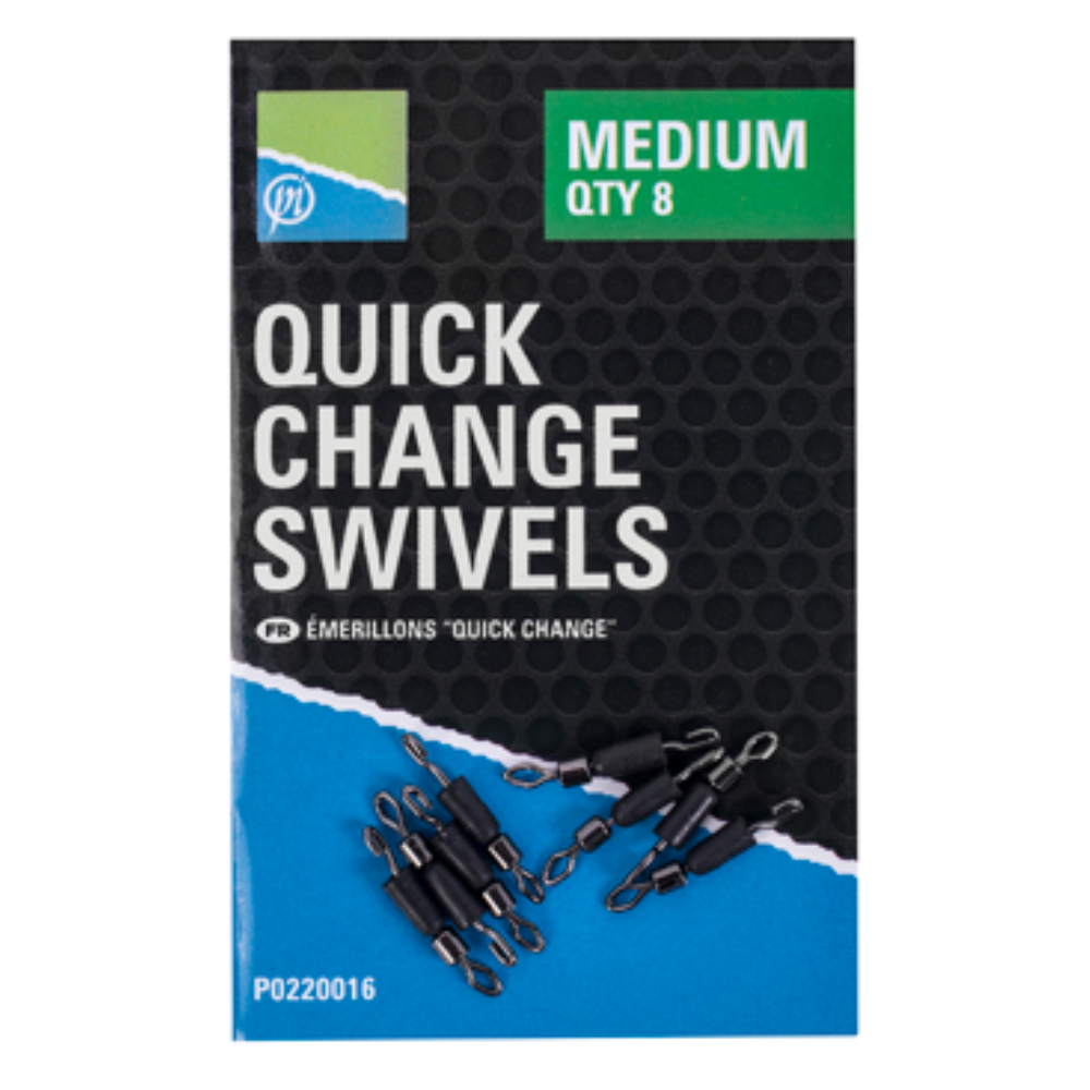 De snelwisselwartels zijn verkrijgbaar in twee maten: klein en middelgroot. Ze maken het mogelijk om snel en gemakkelijk van onderlijn te wisselen, zowel bij het vissen met de feeder als met de waggler. De hoogwaardige wartel vermindert lijnverdraaiing en knopen aanzienlijk.