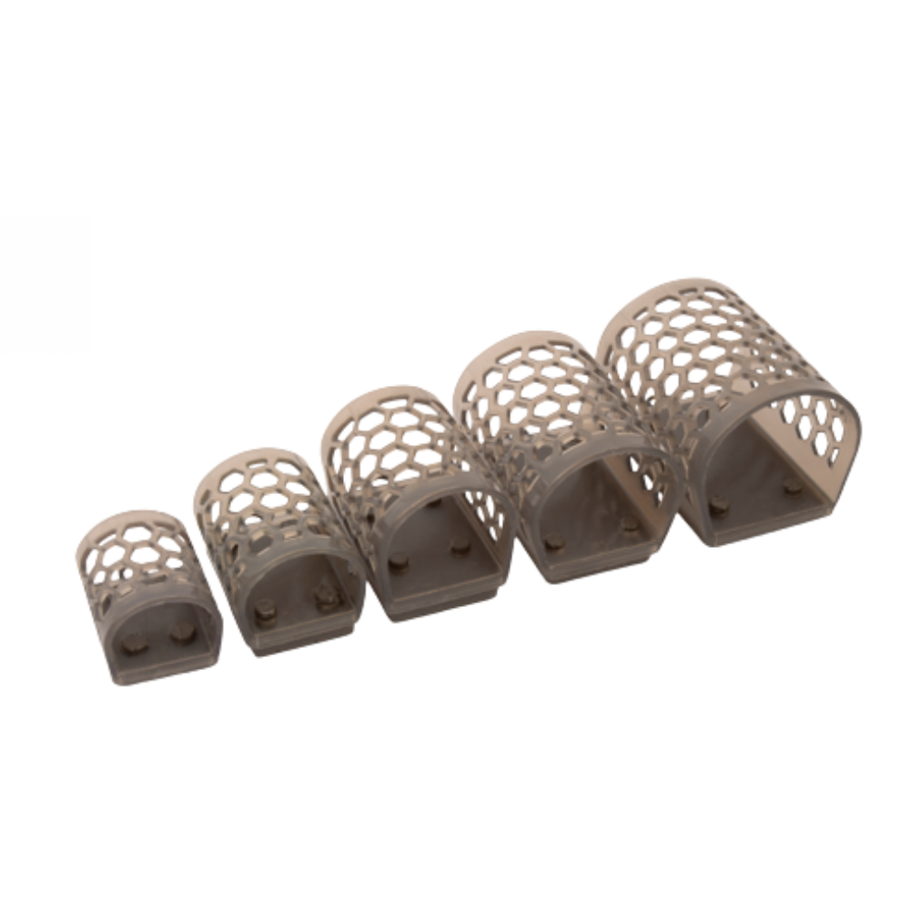 Ons revolutionaire Hexmesh-materiaal zorgt voor een optimale afgifte van het aas, terwijl het tegelijkertijd voldoende grip behoudt om de inhoud binnenin te houden. Dankzij de vele maten en gewichten zijn de Hexmesh plastic voerkooien zeer veelzijdig. Het ontwerp in de vorm van een kooi stelt de visser in staat om de mix nauwkeurig af te stemmen voor een optimale afgifte van het aas.