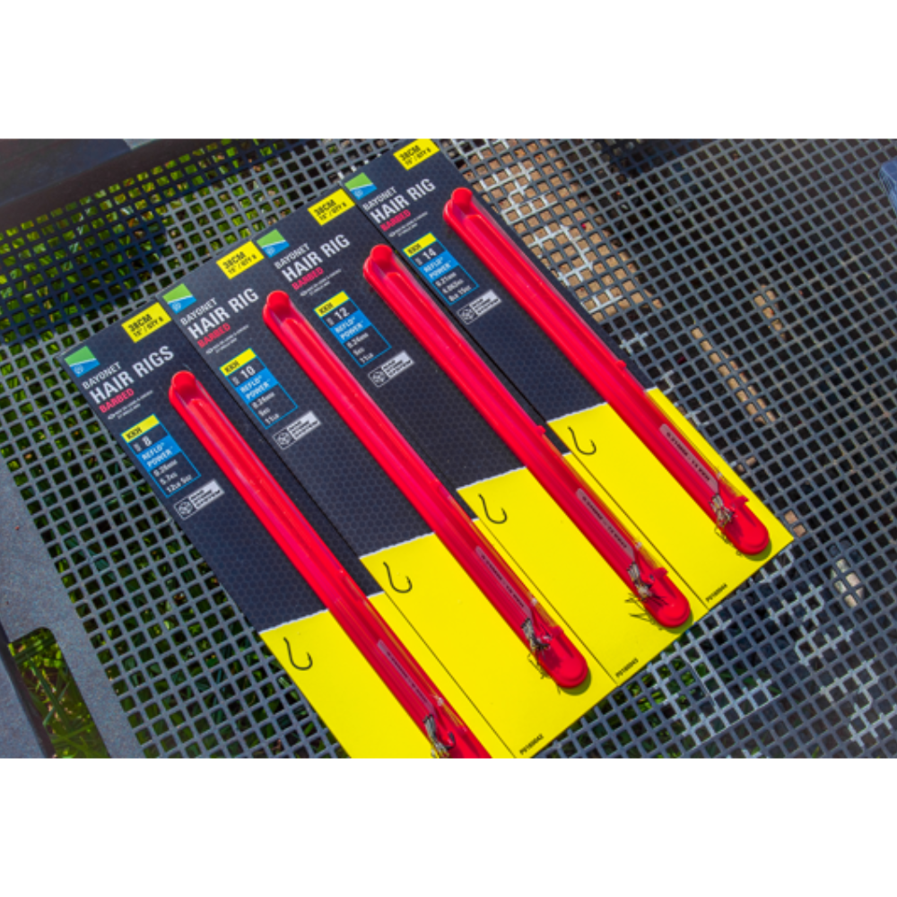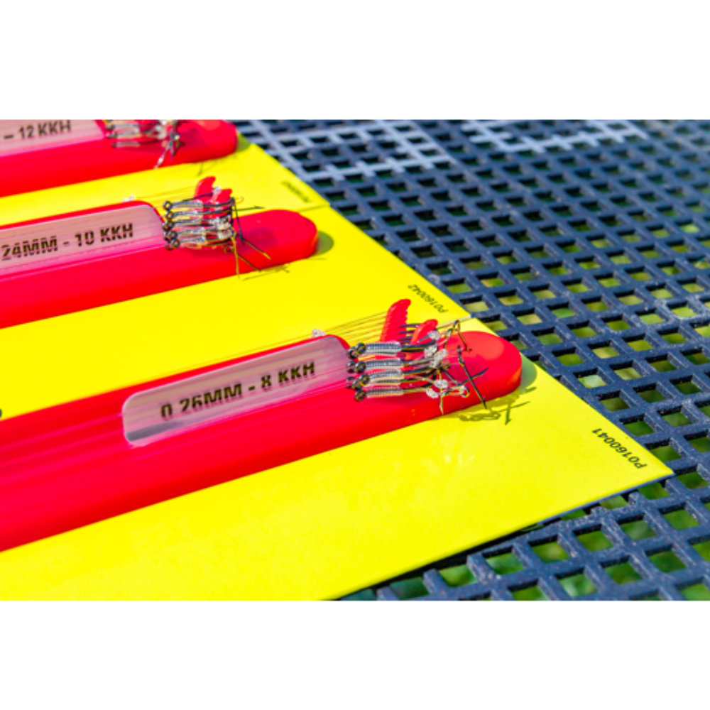Een assortiment superstevige onderlijnen met een weerhaakbajonet en een superstevige KKH-haak met weerhaak. Ideaal voor gebruik met method-, banjo- en pelletfeeders. Geleverd op een Mag-store stick voor gebruiksgemak.
