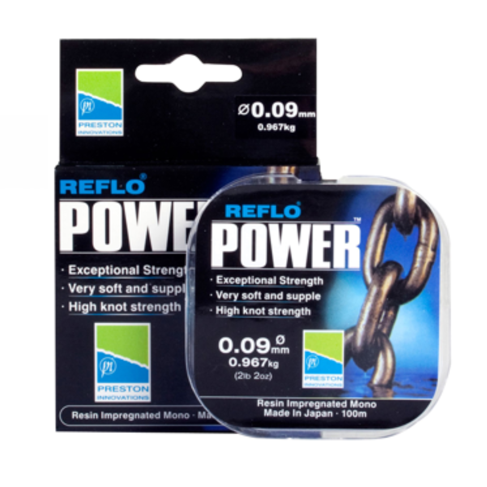 REFLO Power is uitzonderlijk sterk, soepel en helder. Dankzij de ingebouwde rek is het ook een uitstekende lijn voor vaste hengels. Verkrijgbaar in vele maten, is REFLO POWER snel uitgegroeid tot de eerste keuze voor onderlijn voor topwedstrijdvissers.