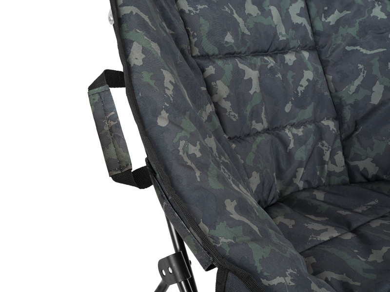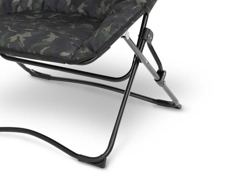 De stoel is gebouwd op een X-vormig metalen frame dat u in enkele seconden kunt in- en uitklappen. Het frame biedt het comfort en de stabiliteit van een grote stoel, maar is ingeklapt zeer compact.