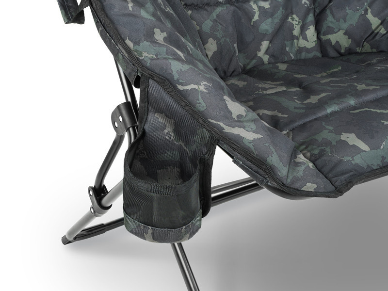 Aan de zijkant van de stoel bevindt zich een praktisch vakje voor uw favoriete drankje, telefoon of kleine accessoires.