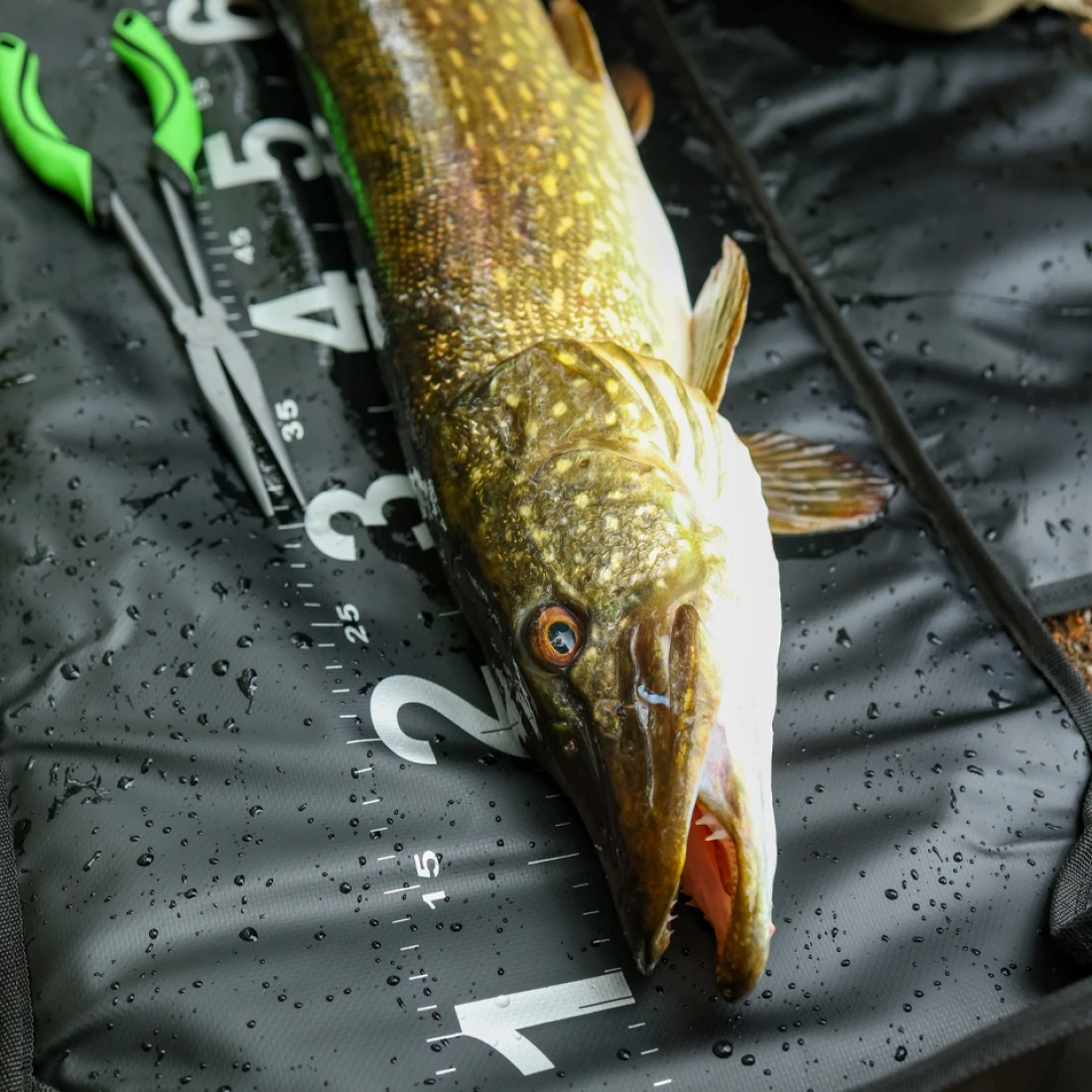 De Skeater Mat & Ruler is speciaal ontworpen voor roofvissers en biedt een veilige en praktische oplossing om je vangst te onthaken en direct op te meten. De mat is voorzien van een verhoogde eindstop voor nauwkeurige lengtemetingen en beschermt tegelijk zowel de vis als je knieën tijdens het hanteren. Lichtgewicht en oprolbaar, eenvoudig mee te nemen dankzij de geïntegreerde karabijnhaak – altijd klaar voor gebruik.