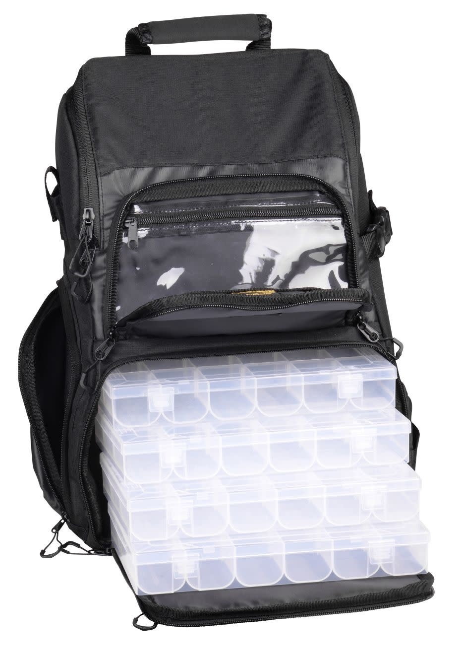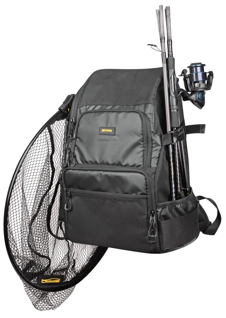 Multifuncitonele rugtas met 4 tackleboxen die via het voorvak te pakken zijn. Een hengel- en nethouder is aan de ene kant bevestigd en aan de andere kant is er plaats voor een tang. Strategisch geplaatste D-ringen maken het mogelijk om accessoires te dragen zoals net, onthaakmat en fleshouder. Binnenin zijn waterdichte vakjes voor documenten en accessoires.